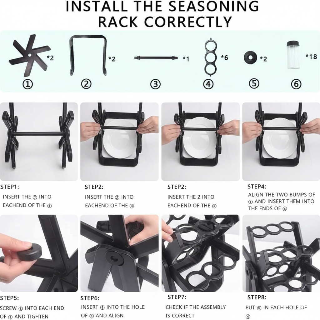 This spice rack organizer keeps your kitchen neat, organized, and stylish 🌶️✨. It comes with 18 clear spice jars that make it easy to identify and access your favorite spices quickly. The compact, space-saving design fits perfectly on countertops or inside cabinets, helping you save space while adding a modern touch to your kitchen 🍳🏠. Durable, easy to clean, and perfect for everyday cooking convenience.
